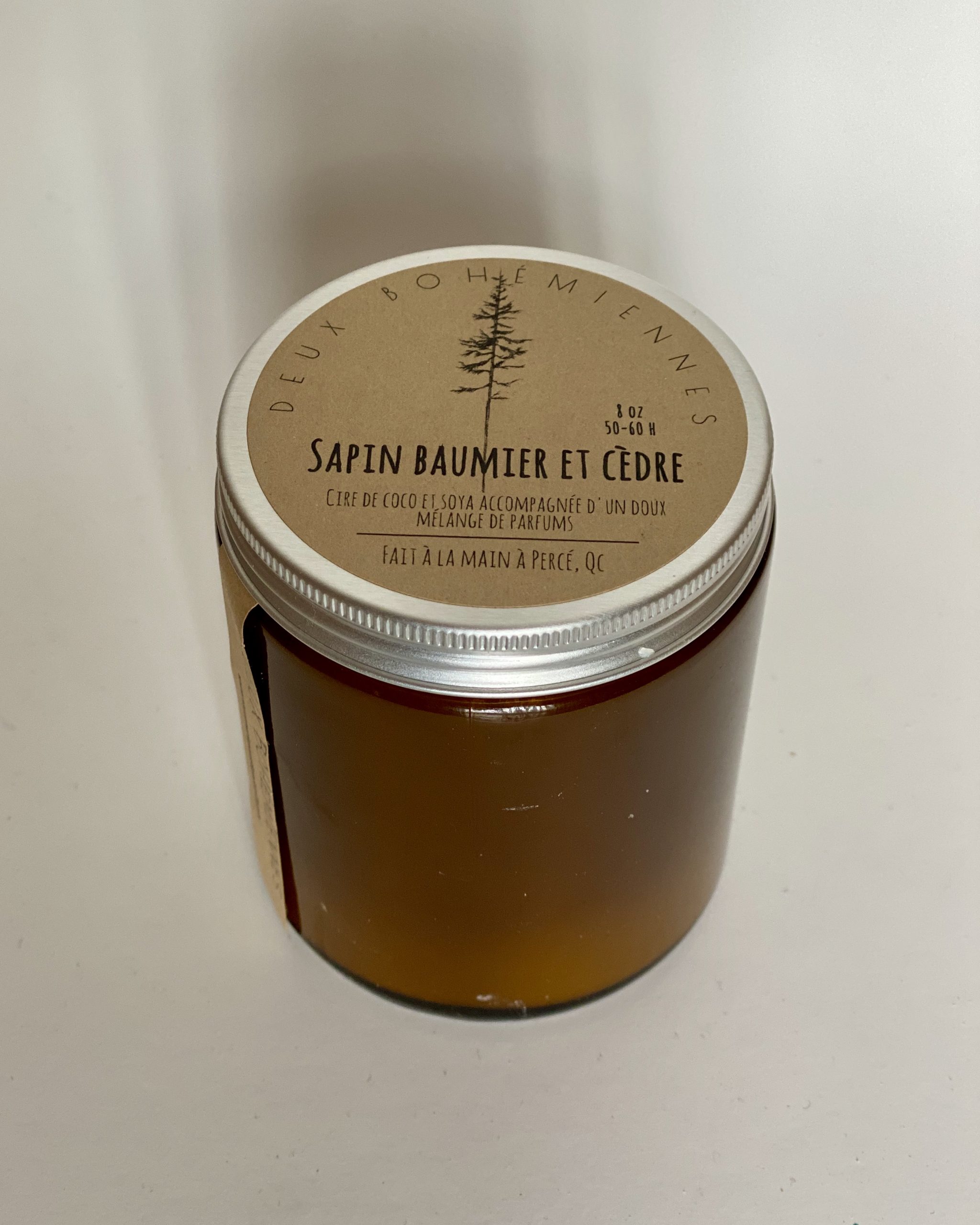 Les essences aromatiques dégagées, à la fois par le sapin baumier et le cèdre, aideront à assainir votre espace et à vous dynamiser. Cette chandelle est parfaite pour les périodes plus ternes. Nos chandelles artisanales sont faites de soya sans OGM avec une mèche de chanvre. Les contenants sont recyclables après lavage à l’eau chaude avec un détergent à vaisselle.