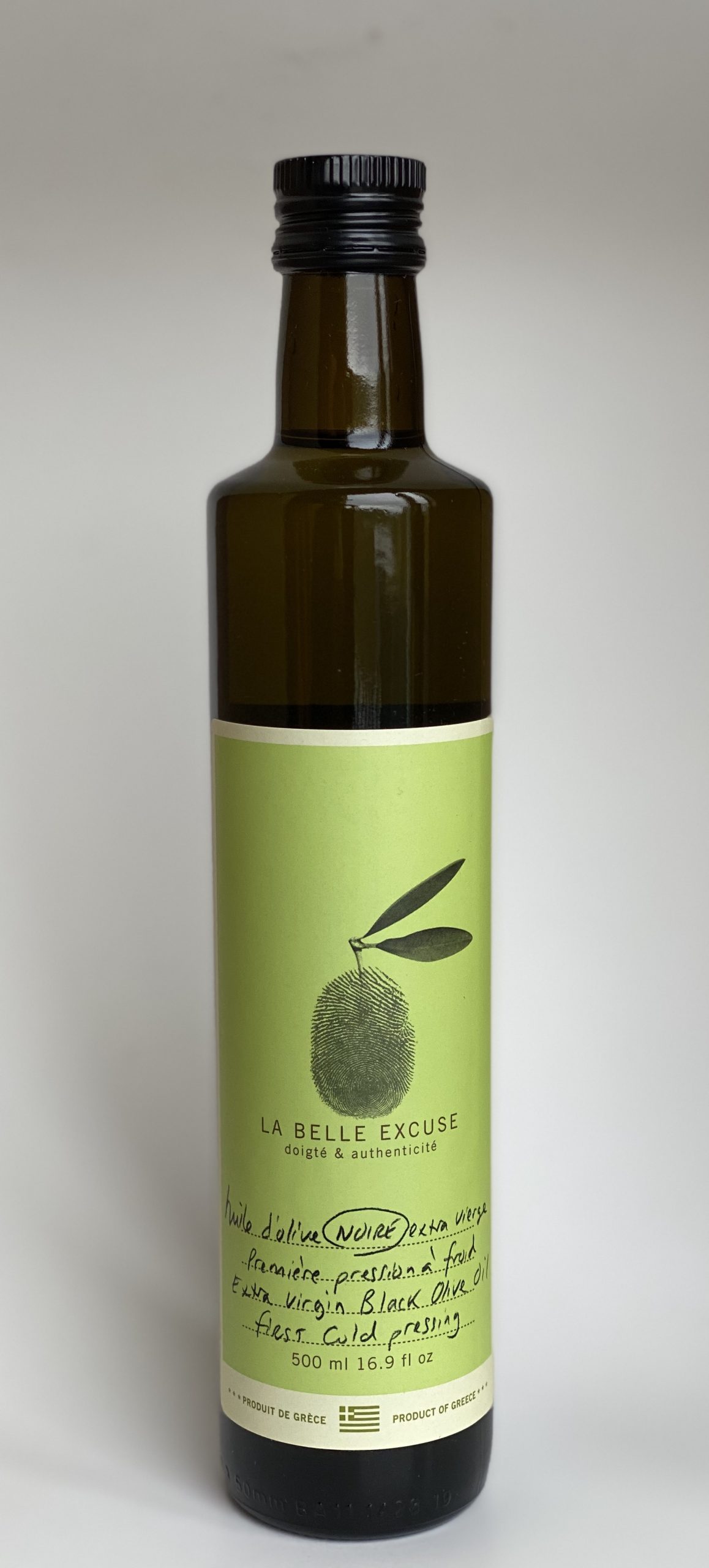 Cette belle excuse est faite d’olives noires Mavrolïa, cueillies à jeune maturité vers la fin octobre et pressées le même jour. Grâce à son climat et à la richesse de son terroir, la région de Trifilia produit des olives exceptionnelles qui donnent une huile d’une saveur particulière, présentant moins de 0,3% d’acidité. Cette huile non filtrée décante naturellement durant deux mois, ce qui permet d’éliminer tout résidu nuisible à la cuisson. LA BELLE EXCUSE vous propose ainsi une huile d’olive noire extra vierge digne d’un grand cru, qui se prête à maintes utilisations.