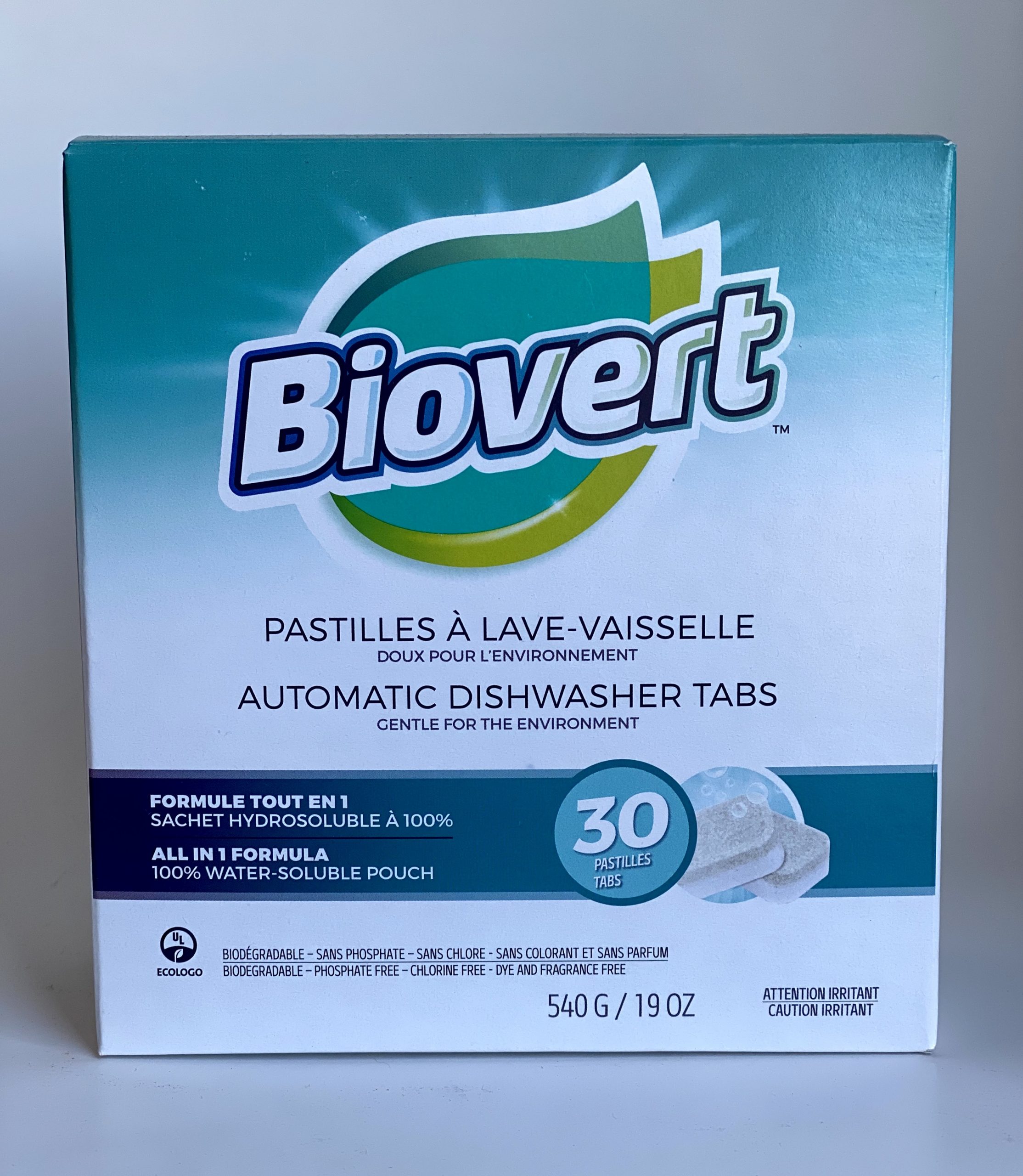 Essayer les pastilles à lave-vaisselle biodégradables de Biovert, c’est les adopter! Avec leurs sachets hydrosolubles à 100% et leur formule sans colorant, sans parfum, sans phosphate et sans chlore, elles ont su faire leur preuve quant à leurs bienfaits environnementaux. Mais saviez-vous que les pastilles à lave-vaisselle Biovert renferment un pouvoir tout-en-un qui contient un agent de prélavage pour dissoudre les taches tenaces et incrustées? Et ce n’est pas tout! Nos pastilles contiennent aussi un détergent pour nettoyer en douceur verrerie et porcelaine, ainsi qu’un agent de rinçage pour prévenir la formation des taches. Ce produit pour laver la vaisselle est donc aussi efficace qu’il est doux pour l’environnement! Un choix tout naturel pour ceux et celles qui ont des fosses septiques!